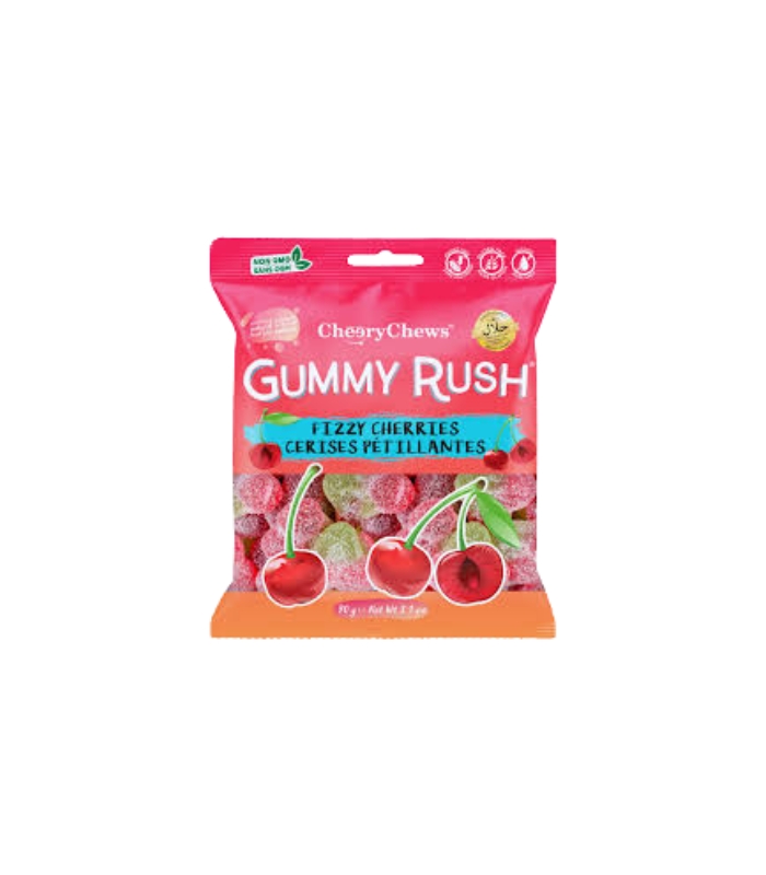 Cheery Chews Gummy Rush Fizzy Cherries 90g – Box of 12 Packs