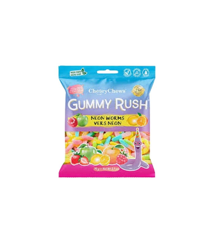 Cheery Chews Gummy Rush Neon Worms 90g – Box of 12 Packs